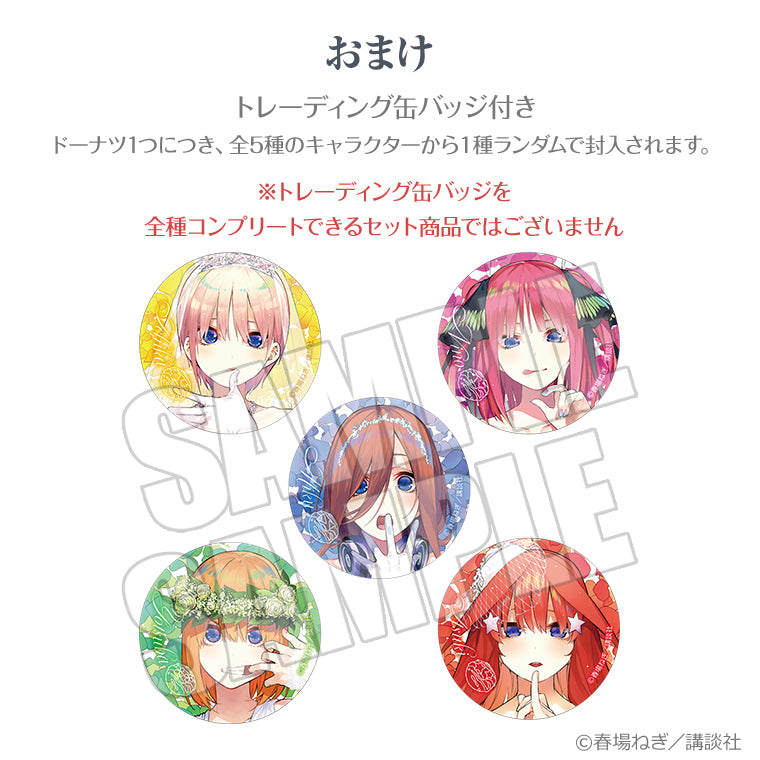 内容は全キャラクターのドーナツがそれぞれ1個ずつとトレーディング缶バッジ5個、ドーナツBOX1個になります。